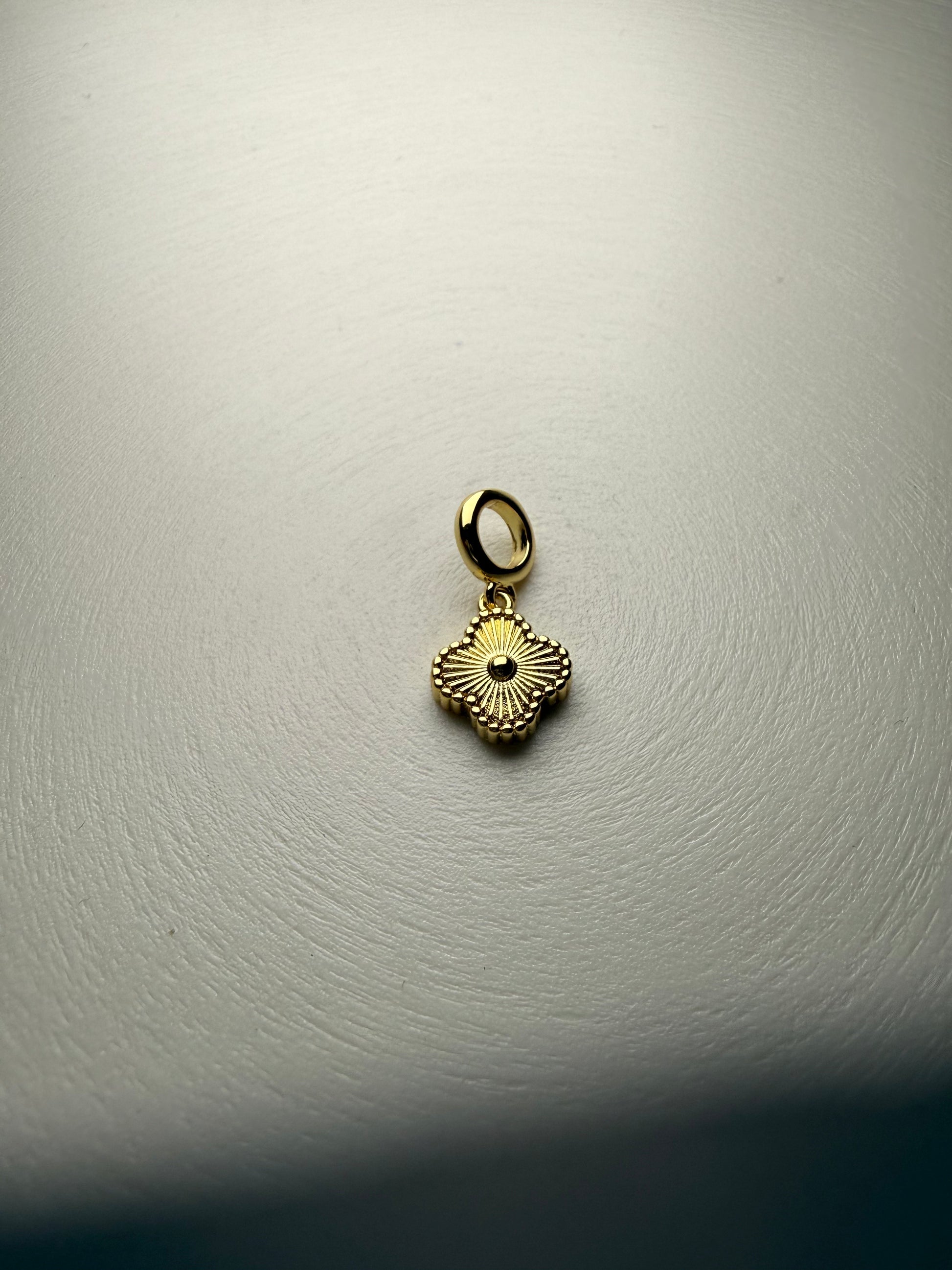 Charm en forma de flor con delicados circones incrustados, bañado en oro 18K. Su brillo sutil y diseño femenino evocan belleza y armonía, ideal para quienes aman los detalles refinados.