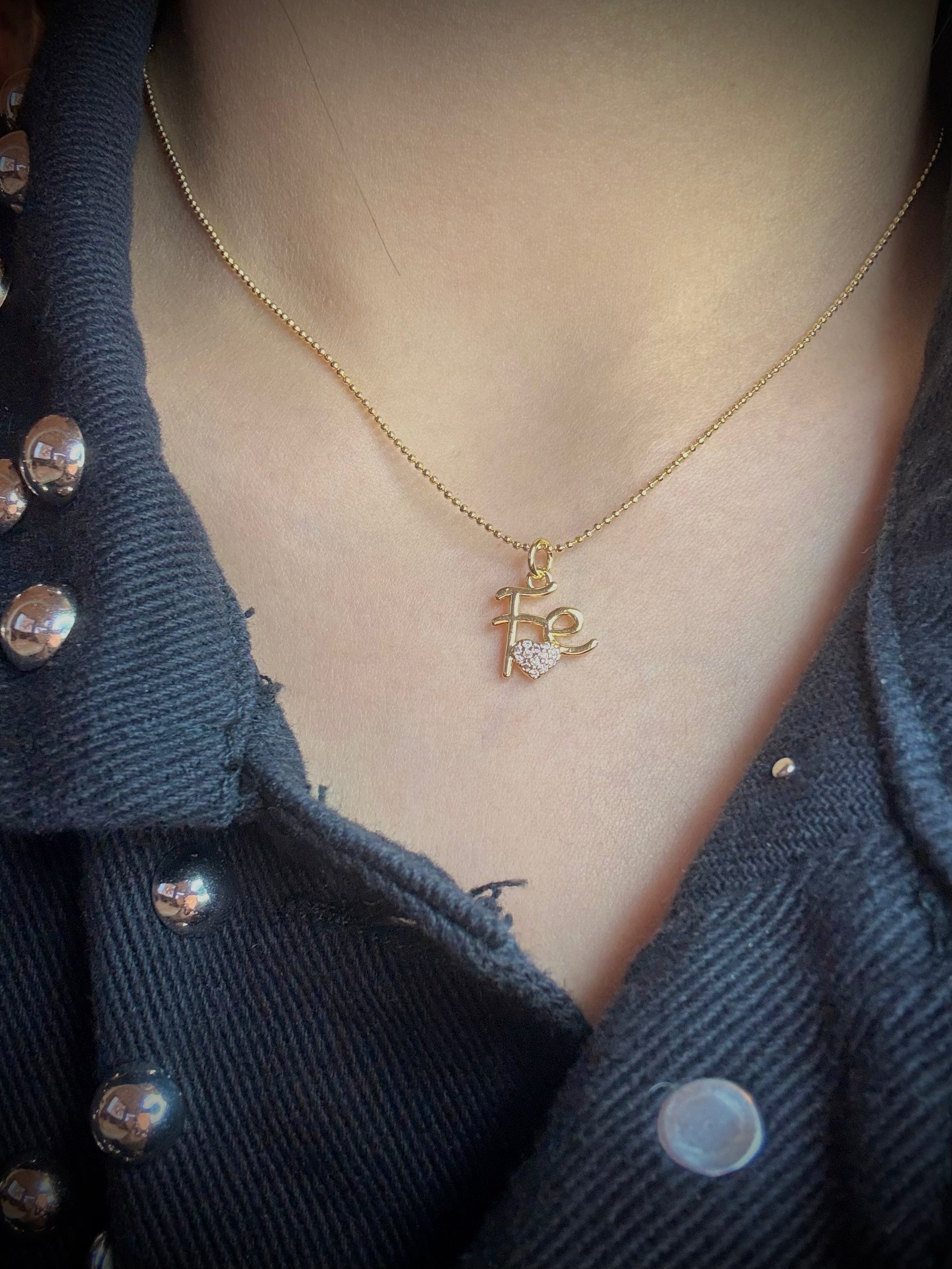 Collar “Fe” con Corazón de Baño de Oro 18K