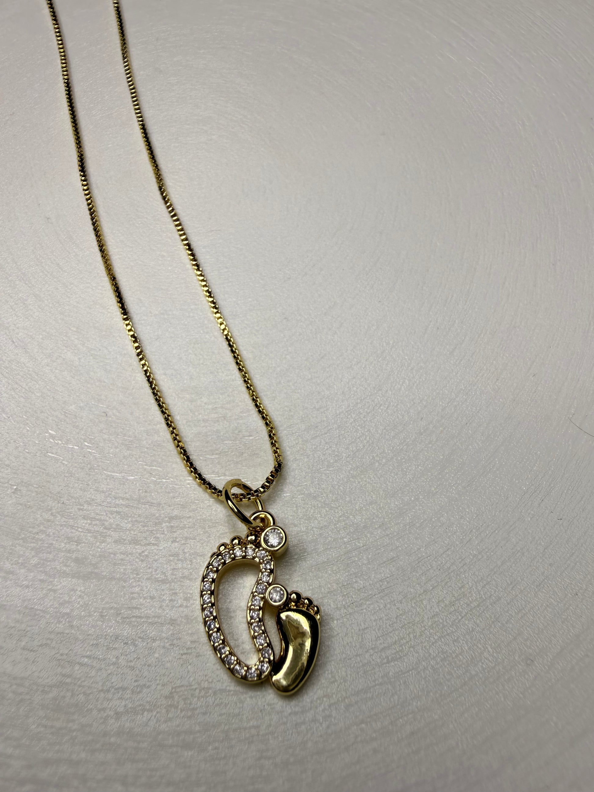 Hermoso collar con dije de huellita y un pequeño pie, un símbolo de amor y conexión con nuestros hijos.
