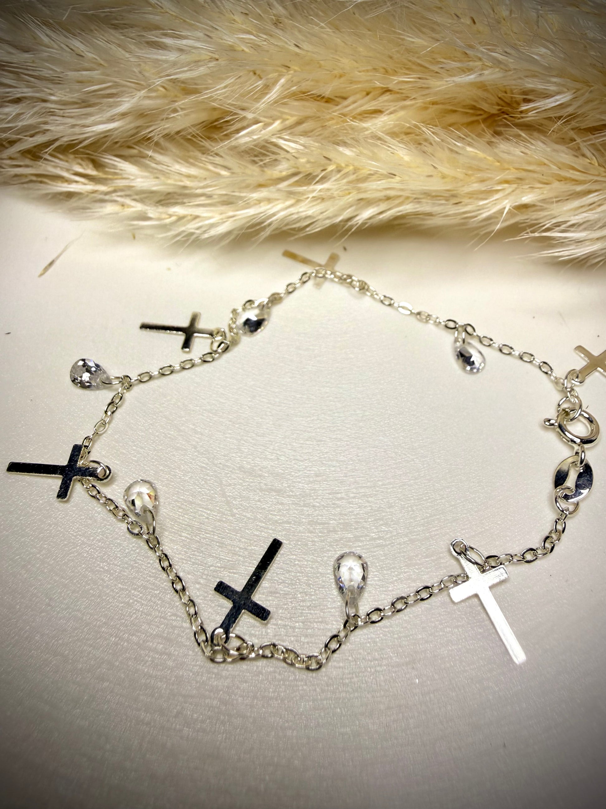 Pulsera Cruz & Cristales (Plata italiana 925)