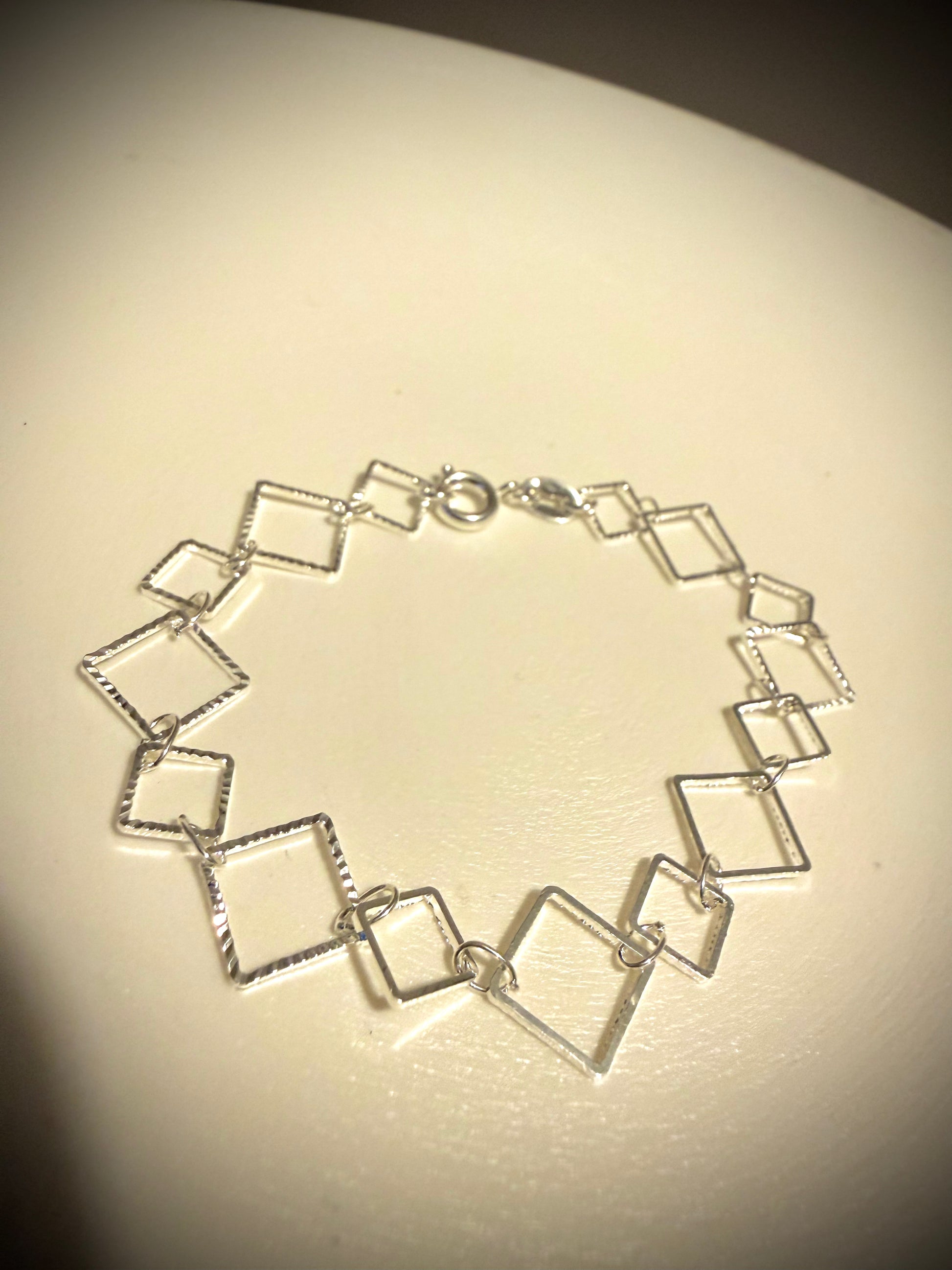 Pulsera elegante con eslabones en forma de rombo. Un diseño geométrico y moderno que aporta un toque distintivo al look.